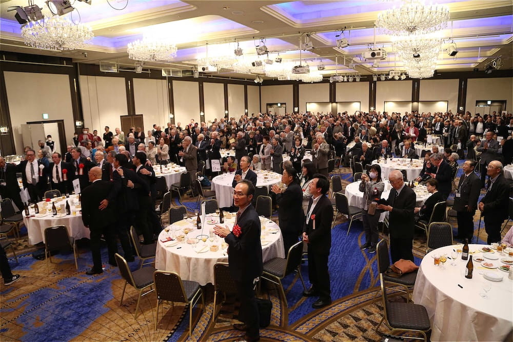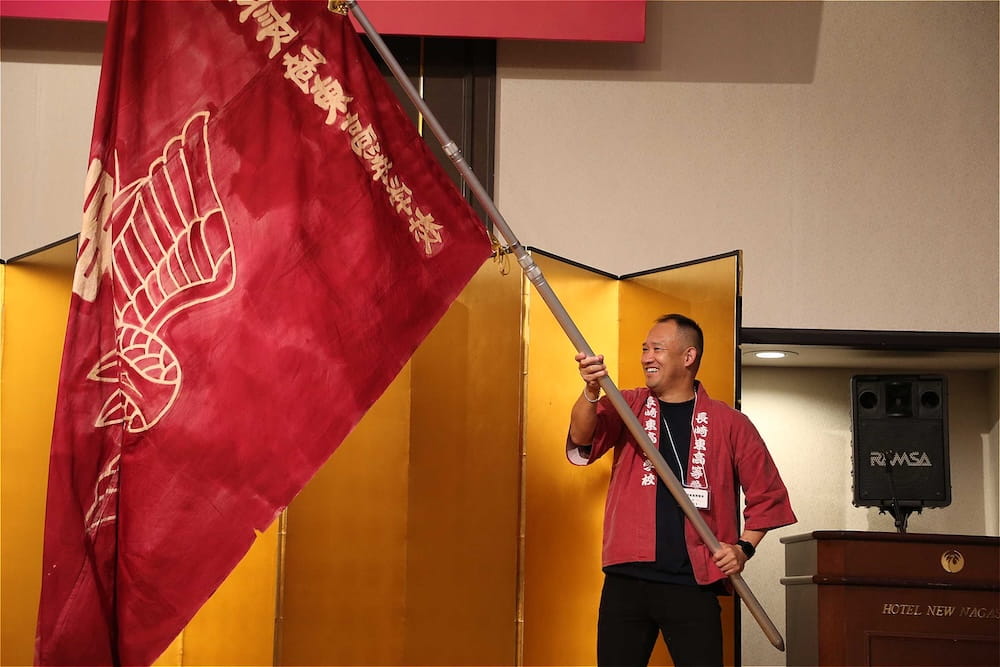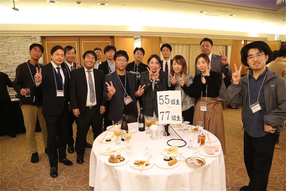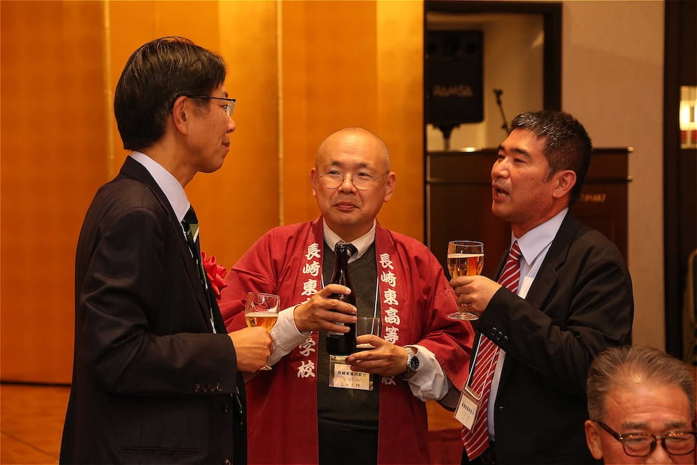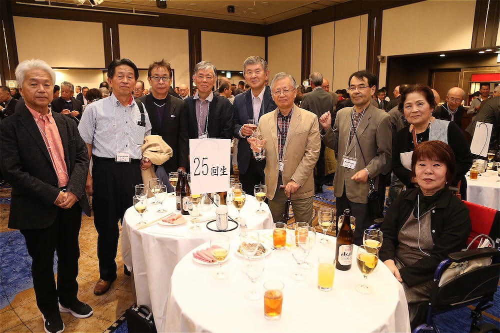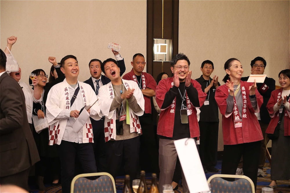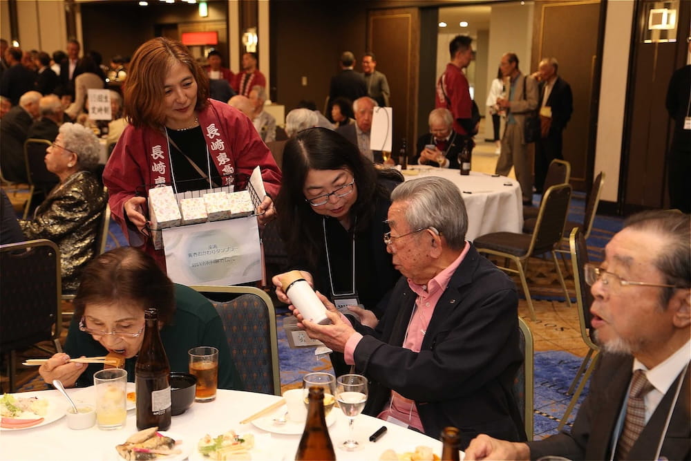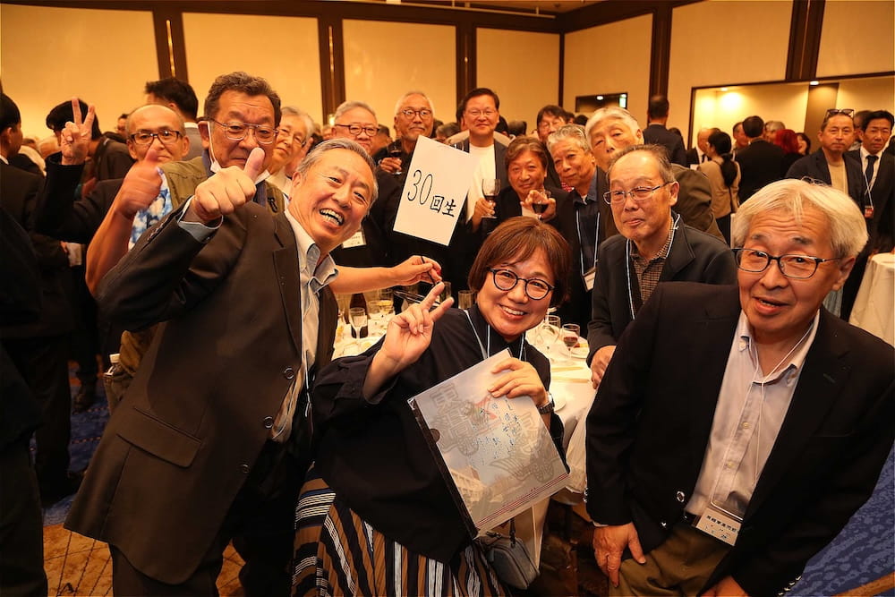 令和7年11月2日(日)13時から長崎市大黒町のホテルニュー長崎で、7年ぶりの東高同窓会総会・懇親会を開きました。平成30年11月の70周年記念同窓会総会・懇親会以降、コロナ禍で幾度となく延期を強いられましたがようやく開催の運びとなり、今回47回生・48回生が担当(実行委員長は47回生の早田知礼くん)しました。テーマに「再集結~新しい長崎で思い出と未来を~」を掲げ、全国から719人(速報値)が集結し、終始賑やかな同窓会となりました。恒例の部活動振興基金への支援(カンパ)では、抽選で食事券やホテル宿泊券が当たる企画が好評で準備した返礼品すべてがなくなり、90万円を超えるカンパが集まりました。