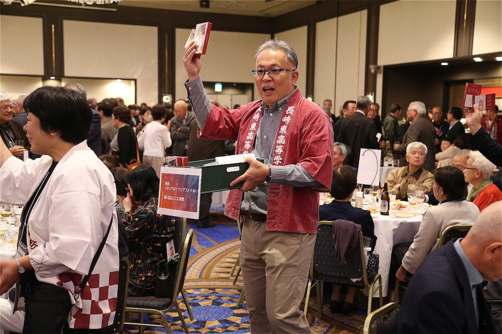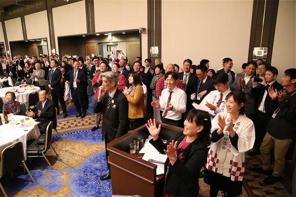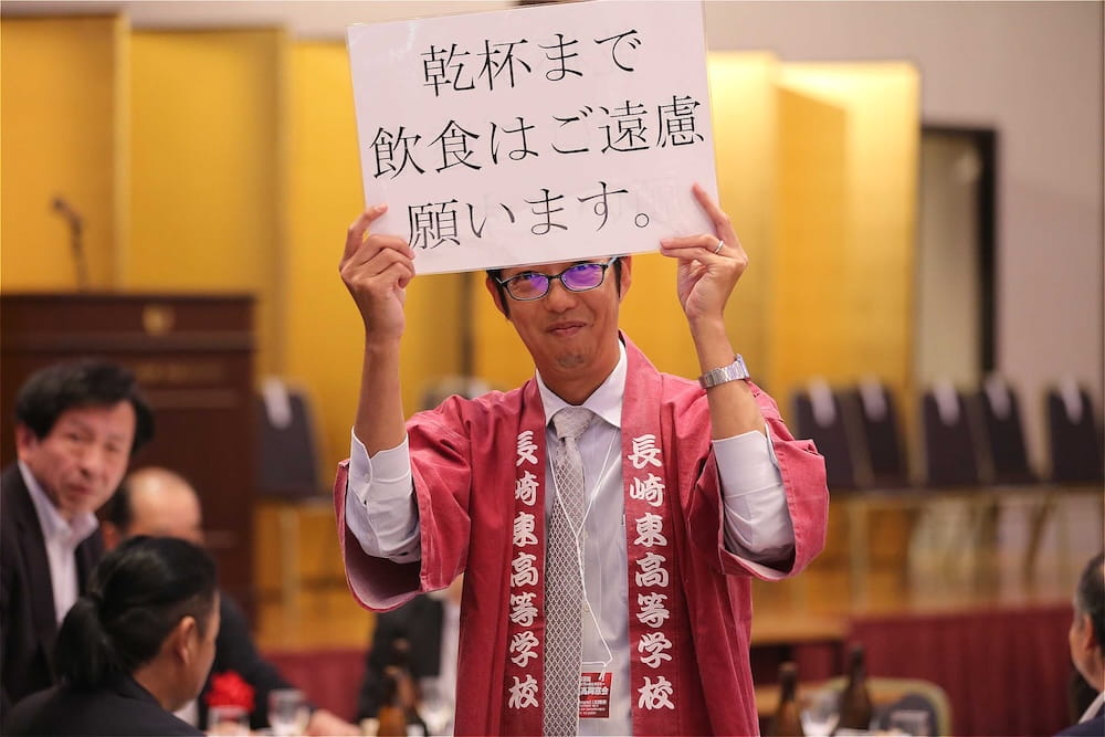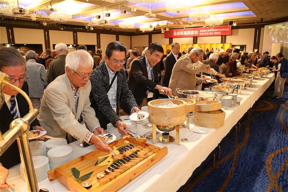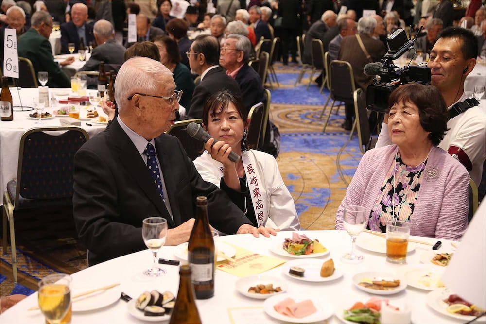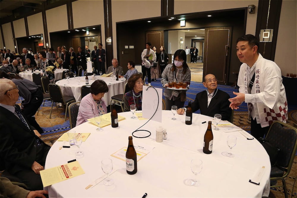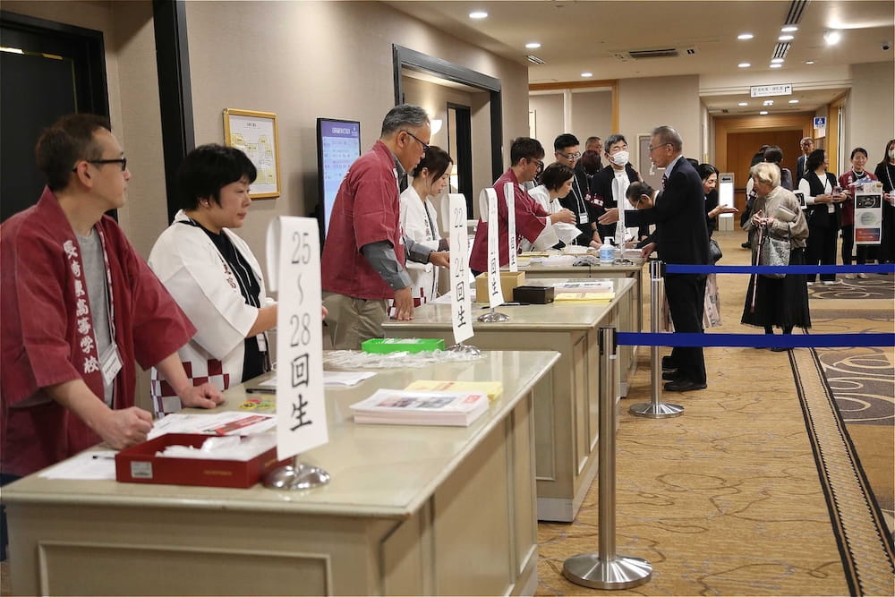 令和7年11月2日(日)13時から長崎市大黒町のホテルニュー長崎で、7年ぶりの東高同窓会総会・懇親会を開きました。平成30年11月の70周年記念同窓会総会・懇親会以降、コロナ禍で幾度となく延期を強いられましたがようやく開催の運びとなり、今回47回生・48回生が担当(実行委員長は47回生の早田知礼くん)しました。テーマに「再集結~新しい長崎で思い出と未来を~」を掲げ、全国から719人(速報値)が集結し、終始賑やかな同窓会となりました。恒例の部活動振興基金への支援(カンパ)では、抽選で食事券やホテル宿泊券が当たる企画が好評で準備した返礼品すべてがなくなり、90万円を超えるカンパが集まりました。