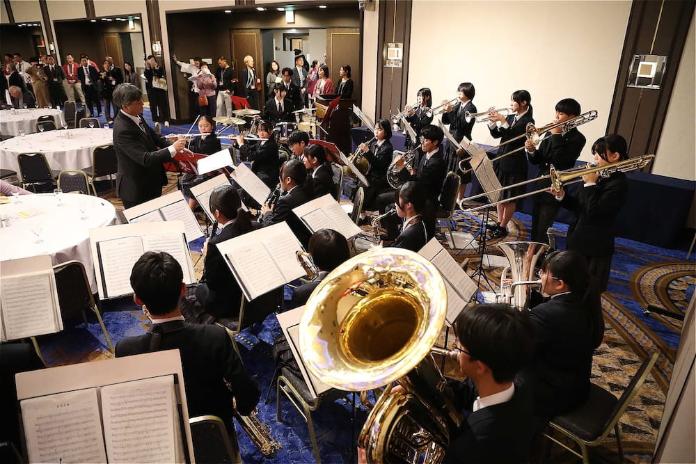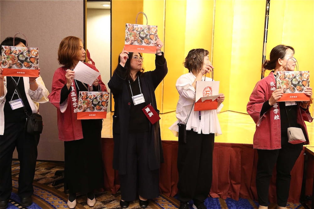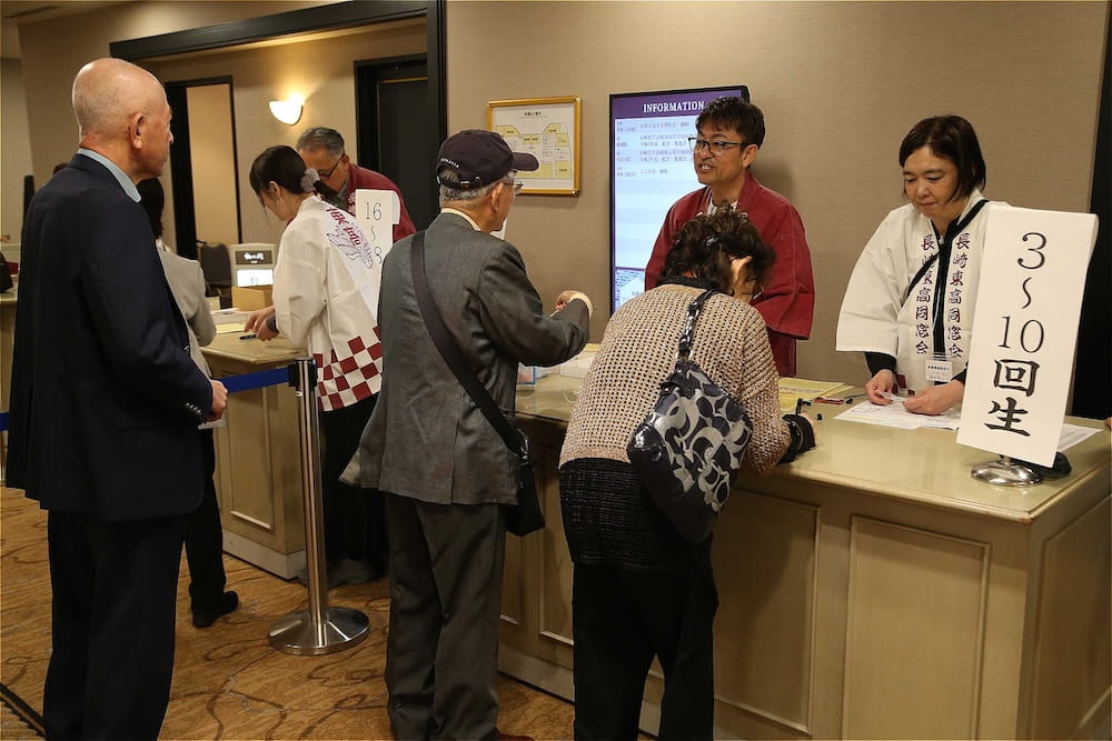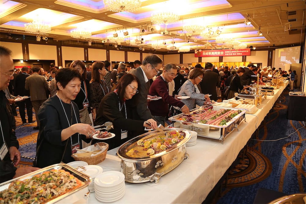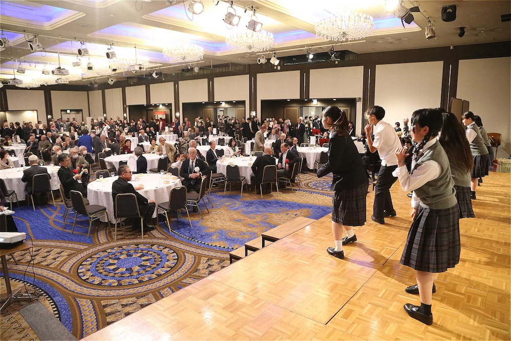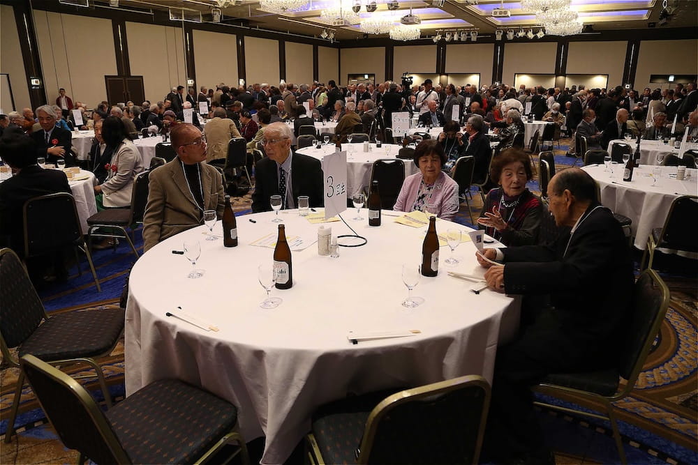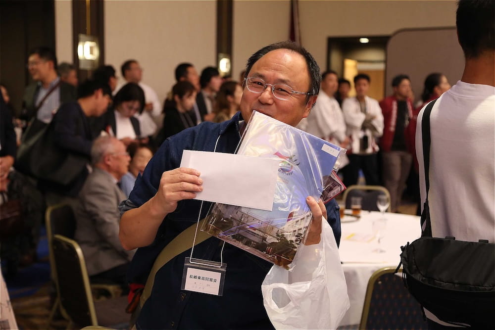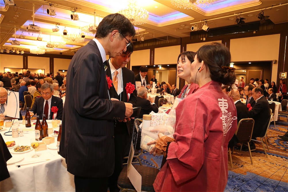 令和7年11月2日(日)13時から長崎市大黒町のホテルニュー長崎で、7年ぶりの東高同窓会総会・懇親会を開きました。平成30年11月の70周年記念同窓会総会・懇親会以降、コロナ禍で幾度となく延期を強いられましたがようやく開催の運びとなり、今回47回生・48回生が担当(実行委員長は47回生の早田知礼くん)しました。テーマに「再集結~新しい長崎で思い出と未来を~」を掲げ、全国から719人(速報値)が集結し、終始賑やかな同窓会となりました。恒例の部活動振興基金への支援(カンパ)では、抽選で食事券やホテル宿泊券が当たる企画が好評で準備した返礼品すべてがなくなり、90万円を超えるカンパが集まりました。