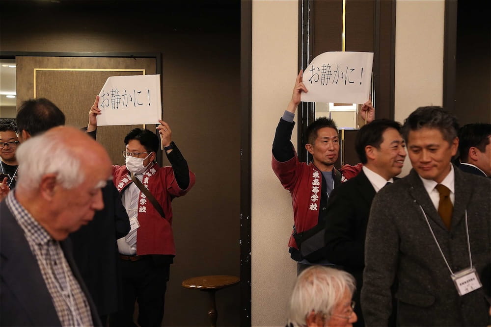 物故者への黙とうのあと、塚﨑寛(25回生)会長があいさつ、その後、山口恒(31回生)専務理事が令和5年度と令和6年度の事業報告、決算報告を行いました。このあと、来賓を代表して東高の田川耕太郎校長があいさつし総会を終えました。